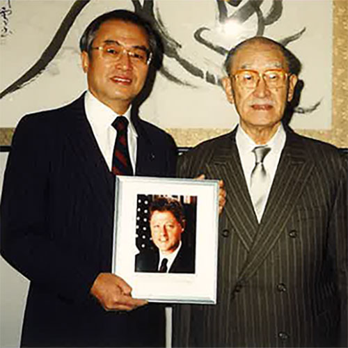 長年にわたる米国製品の積極的な市場開拓、販売拡大に対する謝意として、第42代大統領ビル・クリントン氏より直筆署名入り写真を拝受。また同年「カミソリ史記」発刊。